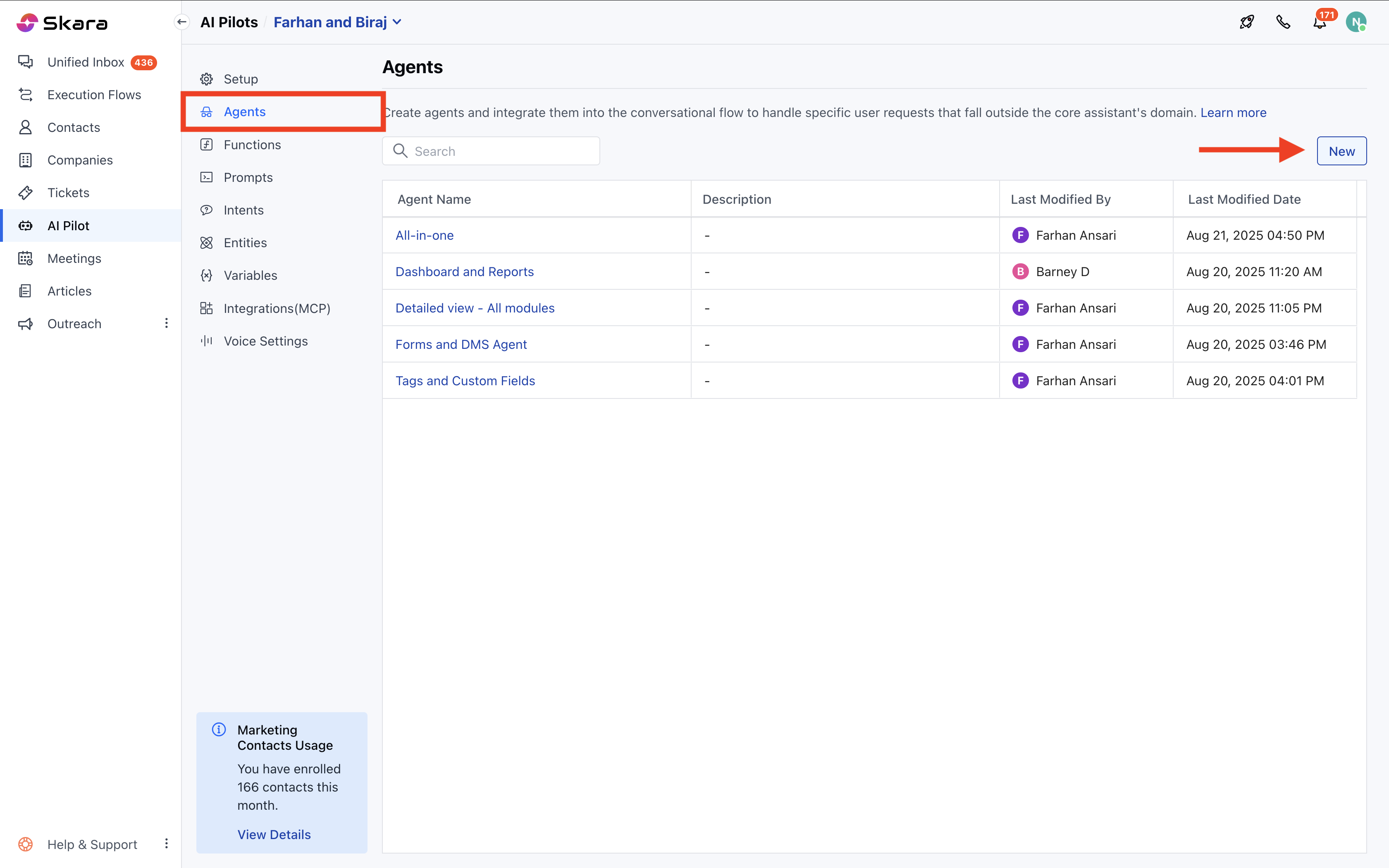 To set up a path for your agent:- Navigate to AI Pilots from the left side bar.