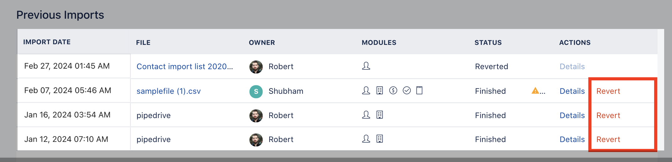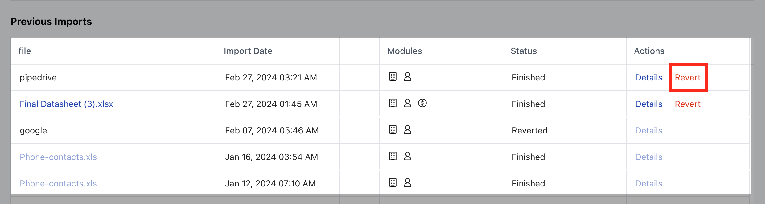 - In case, you want to revert the import due to any reason, click on the ” Revert ” option which will remove all the data records uploaded to your account