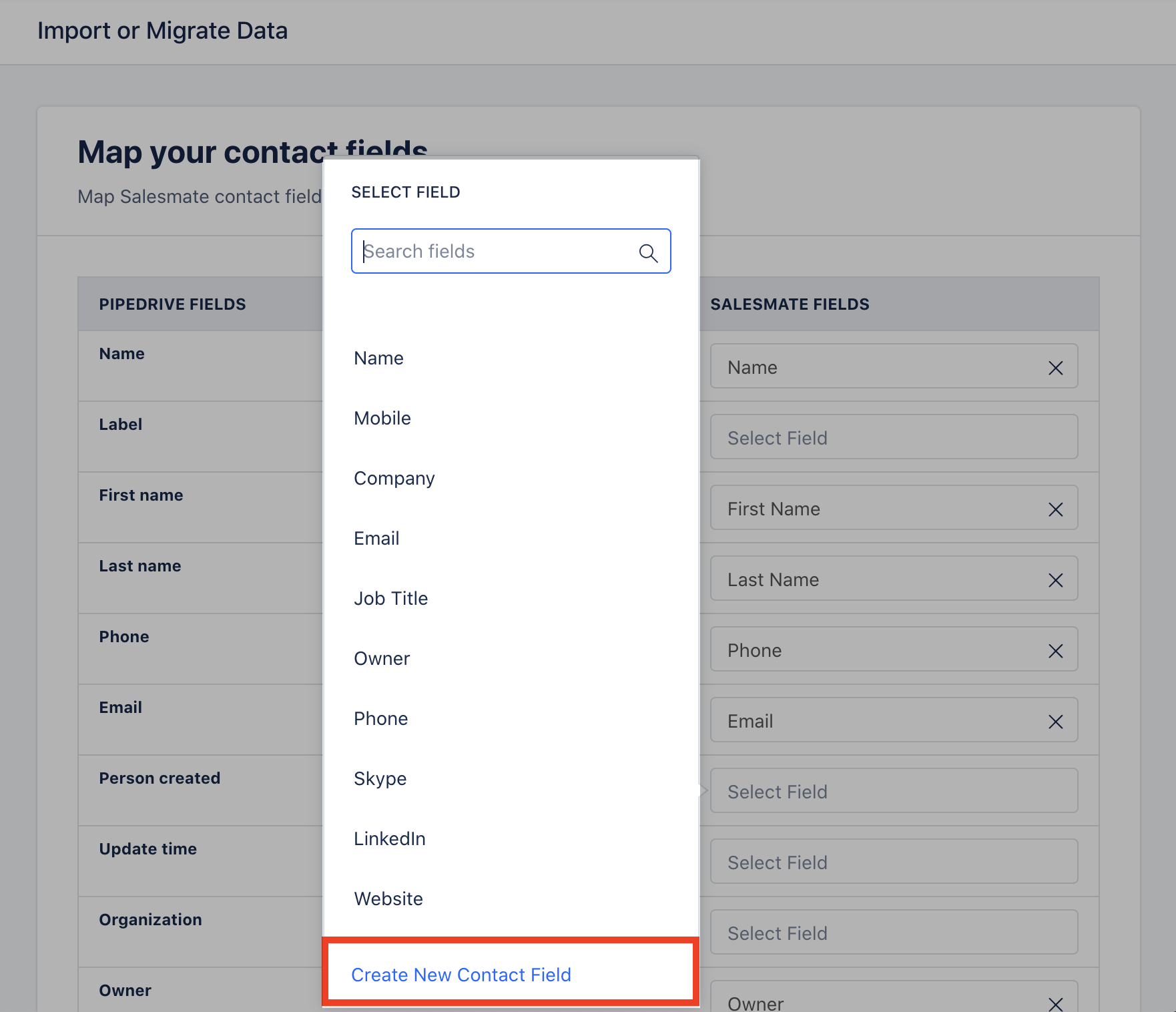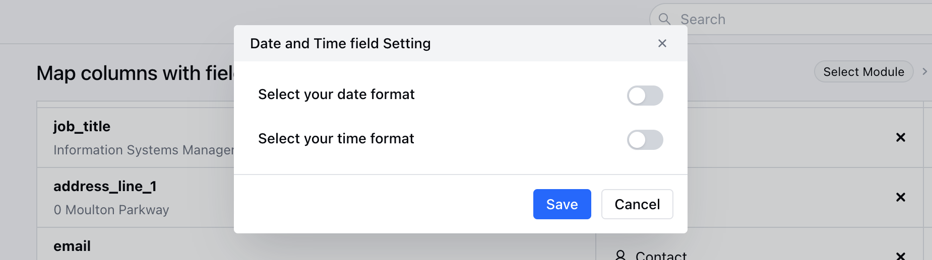 - In case the Field Name present in the imported sheet differs from the one present in Salesmate, you can always map it with the required field by clicking on the Field selection
