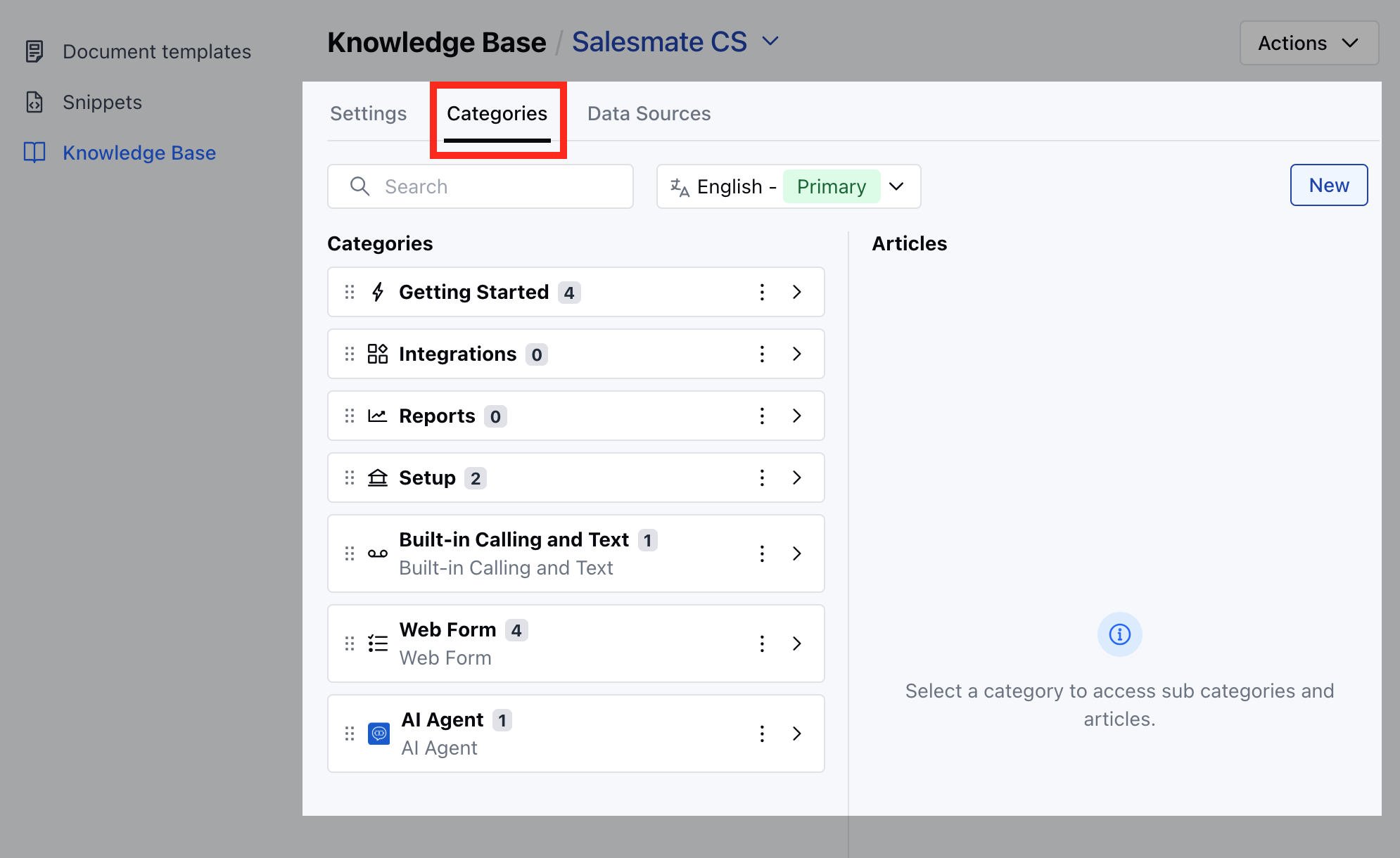 - Select the Knowledge Base option