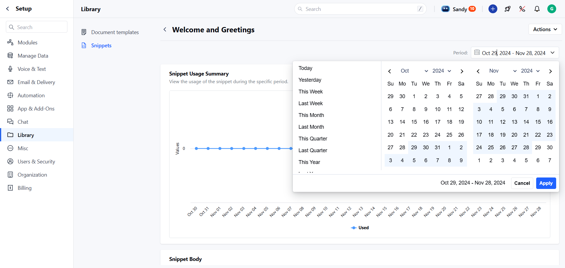 - Usage Statistics: Track how many times the snippet has been used over different time durations
